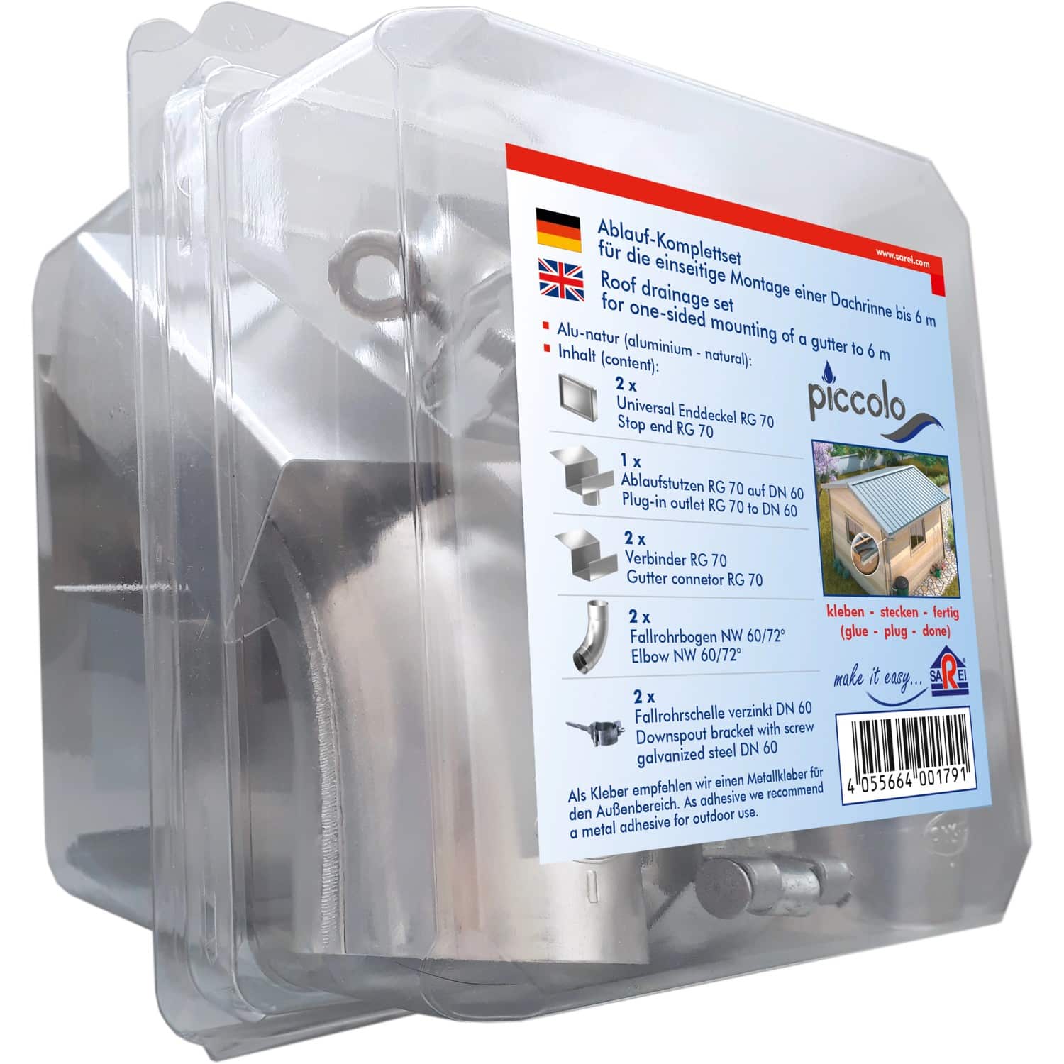 Dieses Set vereint Funktionalität mit Ästhetik und ist speziell auf die Anforderungen von SDF Kastenrinnen aus Aluminium in Naturfarbe zugeschnitten. Es ermöglicht eine einfache Installation und gewährleistet eine langanhaltende Leistung, auf die Sie sich verlassen können.
